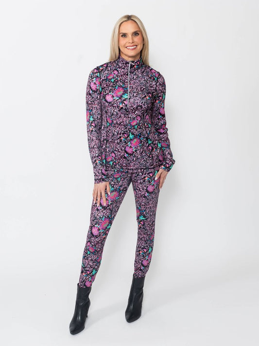 Jungle Print Quarter Zip Neck Top