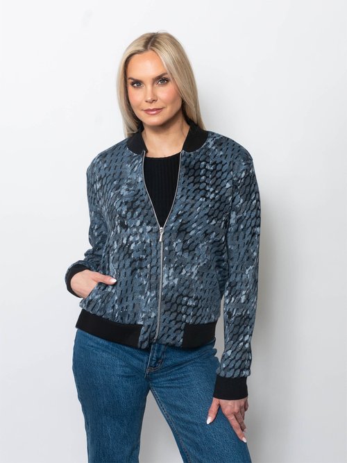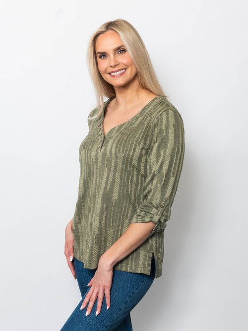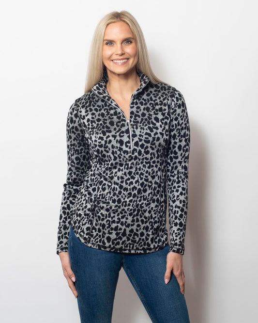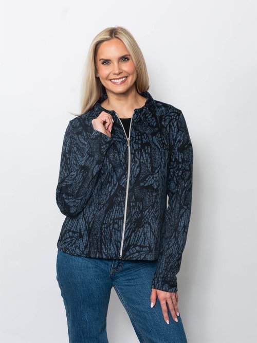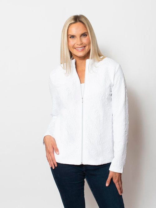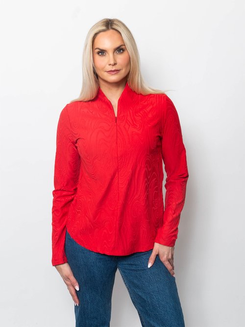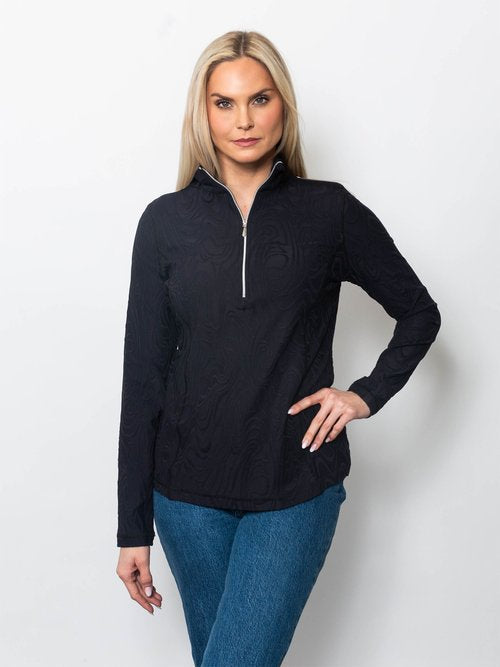 Swirl Jacquard Concealed Quarter Zip Neck Top