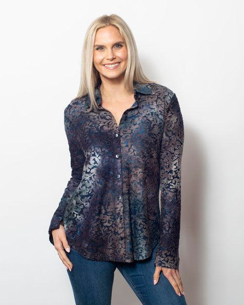 Tie Dyed Burnout Eyelash Long Sleeve Shirt