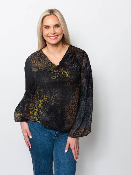 Tie Dyed Burnout Eyelash Bubble Hem Blouse