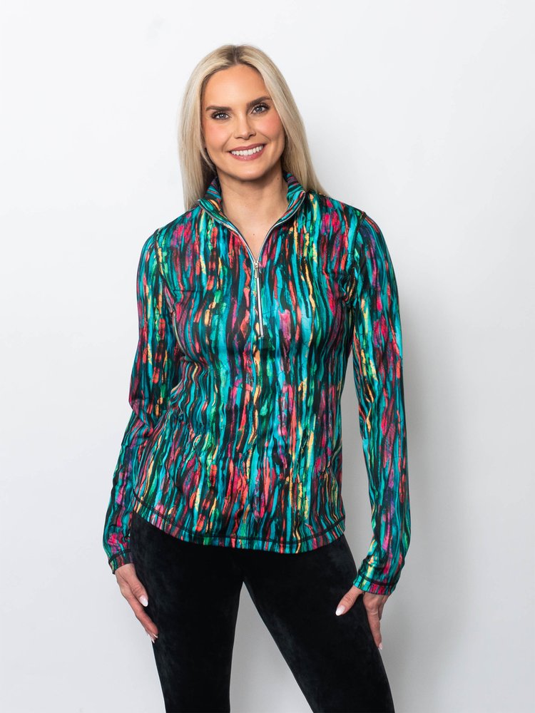 Love the feel & texture of this beautiful red 1/2 zip top--& Love that it is made in the Great USA!
